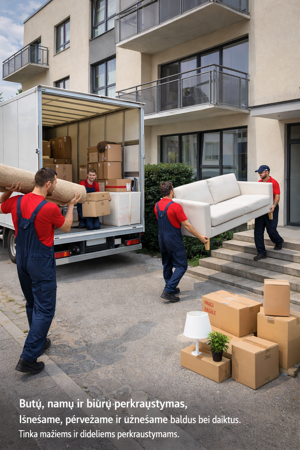 Butų ir namų perkraustymas – tai profesionali paslauga, skirta saugiam, greitam ir sklandžiam jūsų turto pervežimui iš vienos vietos į kitą. Paslauga apima baldų ir buitinės technikos išardymą bei surinkimą, daiktų pakavimą, pakrovimą, transportavimą ir iškrovimą.Perkraustymo darbai atliekami atsakingai ir kruopščiai, naudojant specialias pakavimo priemones bei pritaikytą transportą, kad visi daiktai būtų apsaugoti nuo pažeidimų. Tai patogus sprendimas tiek keičiant gyvenamąją vietą, tiek kraustant namą ar biurą.Rinkdamiesi profesionalų perkraustymo paslaugą, sutaupysite laiko, išvengsite streso ir užtikrinsite savo turto saugumą.