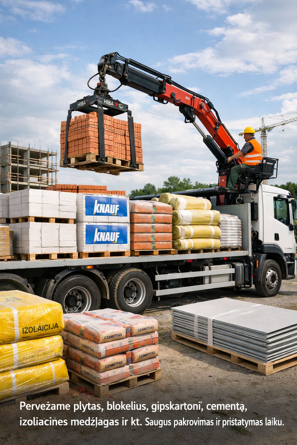 Statybinių medžiagų pervežimas – tai profesionali transportavimo paslauga, skirta saugiam ir savalaikiam įvairių statybinių medžiagų pristatymui į statybų ar renovacijos objektus. Paslauga apima pakrovimą, tinkamą krovinio tvirtinimą, pervežimą bei iškrovimą.Pervežamos įvairios medžiagos: plytos, blokeliai, cementas, gipso kartono plokštės, mediena, stogo danga, izoliacinės medžiagos ir kiti statyboms reikalingi gaminiai. Naudojamas pritaikytas transportas užtikrina krovinio stabilumą ir apsaugą nuo pažeidimų.Tai patikimas sprendimas tiek individualiems klientams, tiek statybų įmonėms, siekiantiems užtikrinti sklandų darbų eigą ir savalaikį medžiagų tiekimą.